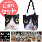 セット販売 動物 クッション トートバッグ アニマル柄 レッスンバッグ 子供用バッグ 犬 猫 おしゃれ かわいい ねこ いぬ プリント