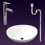 白陶器製楕円形デザイン手洗器円混合水栓蛇口排水セット Ambest WL35N4【激安】【送料無料】