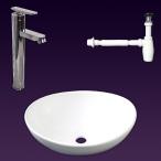 白陶器製楕円形デザイン手洗器円混合水栓蛇口金属床排水セット Ambest WL35N2【激安】【送料無料】