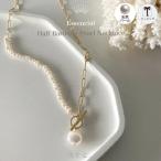★Essencial ハーフ バロックパール ネックレス 50cm★ゴールド メッキ 淡水 真珠 ネックレス 真珠 パール