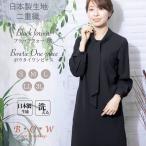 喪服 礼服 レディース ブラックフォーマル ワンピース ボウタイワンピース ウォッシャブル 大きいサイズ スーツ ブラック 黒 冠婚葬祭 日本製 50代 60代