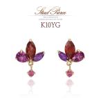 ピアス レディース 揺れる ガーネット アメジスト ルビー 天然石 宝石 ビジュー 10金 10K K10 イエローゴールド プレゼント 記念日 誕生日 ホワイトデー お返し