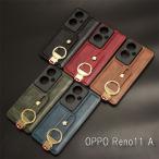 OPPO Reno11 A ケース オープナー付きレザー調 片面 オッポ レノ 11a バンド 簡易スタンド 合成皮革 グリップ フェイクレザー キーリング 耐衝撃 カバー