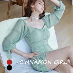 【全3色】シフォン袖シャーリングミニワンピース ミント レッド ブラック 【mini-h090102op】( mja)(220905)
