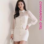 【最高級★LUXURY STYLE】シースルーブラウスツイードミニワンピース アイボリー ブラック S/M/L【see-u25122901lux】(mja)(260113)【hi】