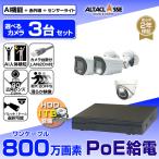 防犯カメラ 屋外 屋内 監視カメラ 録画機 HDD セット カメラ 3台 800万画素 AI POE 給電 電源不要 家庭用 業務用