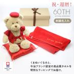 還暦 お祝い プレゼント 60歳 今治タオル ぬいぐるみ ちゃんちゃんこ くま 刺繍 刺しゅう 名入れ テディベア Teddy bear 名入れ 赤 女性 男性 長寿