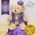 喜寿 お祝い プレゼント 77歳 誕生日 ぬいぐるみ ちゃんちゃんこ くま 刺繍 刺しゅう 名入れ 記念 くまぬいぐるみ テディベア Teddy bear 紫 長寿