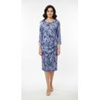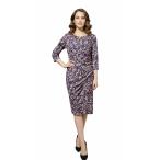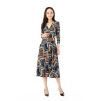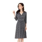 EGERIE エジェリフランス直輸入 上品Vネック柄ワンピース。着痩せするカシュクールデザインでお呼ばれ・通勤も華やかに! 極上ジャージー素材でシワにならず、旅
