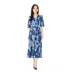 | 商品名 | 「エジェリワンピース」 EGERIEワンピース T1 T2 T3サイズ 5分袖 ミモレ丈ワンピース 総柄 カシュクールネック ジャージー インポートワンピース ブルー 大きい |