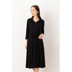【EGERIE/エジェリ】ワンピース 七分袖 黒 ラップ風 カシュクール 膝丈 ジャージー素材 体型カバー 30代 40代 50代 オフィス フォーマル