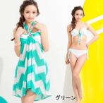 レディース 水着 セット ビキニ ワンピース 3点セット スカート 胸ギャザー ホルターネック セパレート水着 体型 カバー ボーダー 花柄 無地 小