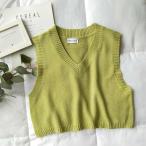 レディース ベスト ニットベスト Vネック ショート丈 ゆるシルエット トップス ホワイト グレー グリーン ブラック ベージュ ブラウン フリーサイズ 送料無料
