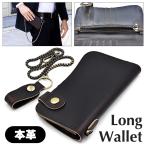 ボーナスストア対象 レザー 長財布 本革 無地 ロングウォレット チェーン付き 腰付可能 スナップボタン マグネット不使用 ICカード収納可 メンズ