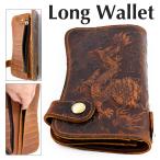 ボーナスストア対象 龍模様 ロングウォレット チェーン付き バイカー 財布 エンボス ドラゴン柄 竜 レザー マグネット不使用 ブラウン 和柄 浮き彫り