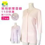 前開き 肌着 婦人 2枚組 7分袖 ワンタッチ肌着 綿100% 下着 女性用 マジックテープ 介護肌着 介護下着 インナー 施設 シニア アンダーウェア ワンタッチテープ