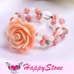 可愛い パワーストーンブレスレット カリーナローズ チェリークォーツ クラッククリスタル 薔薇パーツ デザインブレスレット レディース ハッピーストーン
