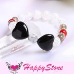| 商品名 | パワーストーンブレスレット オニキスハート石 クラッククリスタル 本水晶 ブラックハートリボン 天然石ブレスレット レディース ハッピーストーン |