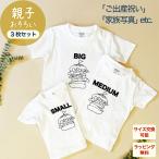 | 商品名 | 出産祝い 男の子 女の子 カタログギフト 1歳 誕生日 親子 で おそろい ハンバーガー SMALL×MEDIUM×BIG プリント Tシャツ3枚組ギフトセット プレゼント |