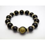 『菊紋章』金彫り 16mm オニキス ブルーゴールドストーン ブレスレット 風水 パワーストーン