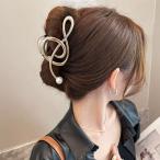 JSfashionヘアクリップ 全2色 音符型 音楽 パール付き ヘアアクセサリー 大きい 大きめ ビッグサイズ バンスクリップ 成人式 謝恩会 髪留め acc00177