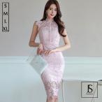 JSfashionレース ワンピース パーティードレス アメリカンスリーブ 刺繍レースドレスワンピース タイトワンピ ノースリーブ 華やか JSfashion