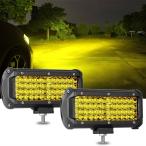 LED ワークライト 12V 24V 72W 3000K イエロー 黄 防水 フォグランプ 作業灯 デッキライト 投光器 前照灯 車幅灯 照明 トラック 2個