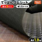 てっぱん ゴムシート 3mm厚×幅1.5M×長さ1.9M 黒 縞鋼板模様 チェッカーズプレート ゴムマット