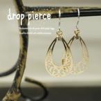 ピアス 透かし模様の入った細長ドロッププレートのピアス サージカルステンレス チタン フックピアス スタッドピアス 雫 しずく ラウンド サークル 送料無料