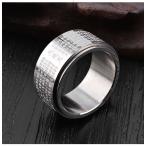 ステンレス製 回転リング☆仏教の経典を彫るデザイン いかつい 神聖 メンズ かっこいい プレゼント 贈り物 ポーチ付き