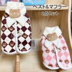 犬服 ドッグウェア ベスト&マフラー 2点セット 背開き クマ柄 可愛い オシャレ 柔らかい おもしろい 可愛い モコモコ