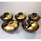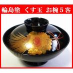 輪島塗 祝い くす玉 吸物椀5客 輪島塗お椀 味噌汁椀 木製 漆器 スープ椀 割玉 金蒔絵 蒔絵椀