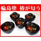 輪島塗 椿蒔絵 吸物椀5客 つばき椀 木製椀 漆器椀 蒔絵椀 スープ椀 味噌椀 汁椀 つばき蒔絵