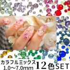 ラインストーン ガラス製 12色セット1mm〜7mm 約350〜450粒 訳アリ ミックス ネイル レジン アクセサリーパーツ ビーズ ライトジュエリー