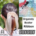 レディース シュシュ オーガンジー リボン ボリューム 8色 華やか トレンド お洒落 まとめ髪 ヘアゴム ヘアポニー ヘアアクセサリー ヘアアクセ まとめ髪