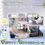ドールハウス ミニチュア 手作りキット セット 現代モダン モデルルーム風 インテリア二階建ての家 ( LEDライト + アクリルケース 付属 )