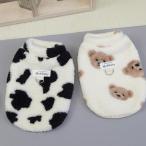 NEW! 秋冬新作 超可愛い! 犬服 冬春 くまちゃん 牛柄 袖なし トップス ベスト ふわふわ あったか ペットウエア【a477】