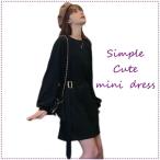 | 商品名 | ワンピース 長袖 ミニ丈 無地 チュニック ベルト付き バルーン袖 Aライン ミニワンピ 体型カバー ブラック |