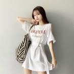 ワンピース 韓流 オルチャン 韓国 ビッグシルエット カジュアル レディース ロゴ 半袖 ミニ 普段使い ルームウェア 綿 ホワイト
