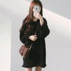| 商品名 | ニットワンピース ブラック ひざ丈 プルオーバー Vネック 長袖 ゆったり 無地 |