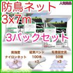防鳥ネット サイズ 3m×7m 張り方 ベランダ 留め具 透明 カラス 鳩 3セット plusgree