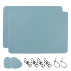 ランチョンマット キッチンマット 30cmx40cm シリコン 2枚 ペールブルー レザー 模様 コースター ピンチ バンド 付属 plusgree