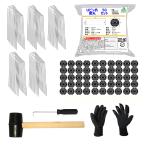 plusgree Uピン杭 黒丸 50セット 固定ピン 20cm ゴムハンマー 爪付き多機能手袋 ピックフック 付き