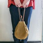 本革スウェード/ベロア製巾着サコッシュバッグ カラシ