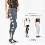 レディース2サイドラインレギンスパンツ スポーツMIX ヨガ ジム 運動 スポーティー 移動着 ブラック グレー ストレッチ レギパン