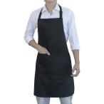 エプロン 黒 首掛け エプロン 肩掛け シンプル エプロン 長さ調整タイプ 女性用 男性用 メンズ レデイース カフェエプロン 無地 おしゃれ 大容量ポケット