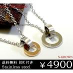 ペアネックレス リングデザイン ピンクゴールド スチールシルバー キュービックジルコニア S-GROWN 送料無料