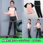 スポーツウェア レディース トレーニング ジム 半袖 ロングパンツ 上下2点セット 速乾 伸縮性 細見え 可愛い ピーチピンク