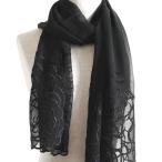 訳あり商品!ストール スカーフ ブラック刺繍菊柄 シルクストール シルクスカーフー12003