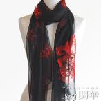 ストール シルク レディース ブラック&レッド 花刺繍柄-13601